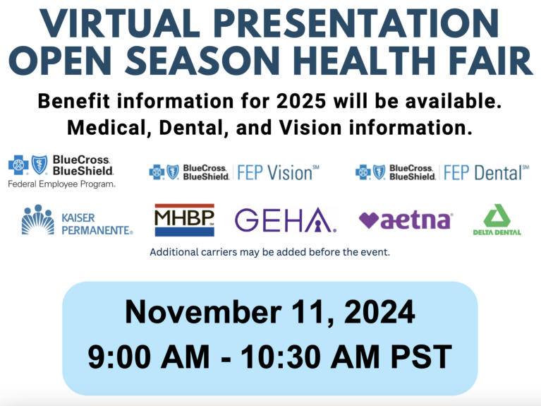 NARFE CA Federation hosts an FEHB Virtual Health Fair on November 11, 2024 at 9 am PST.