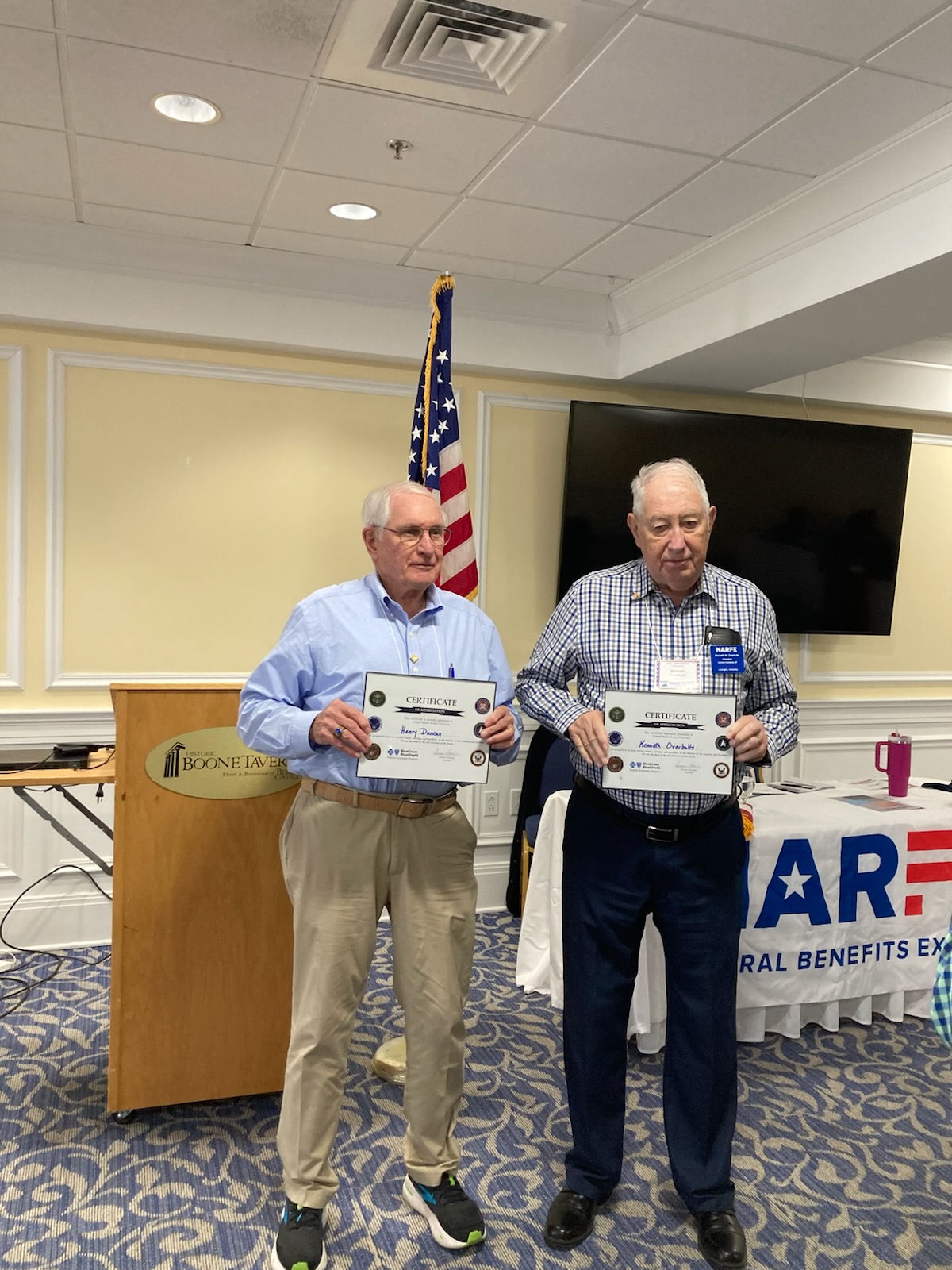 Chapter President Kenneth Overhults presenting Ron Ray, Chapter NARFE-PAC chair, the Distinguished member award at our October 1, 2025, Chapter Business meeting.