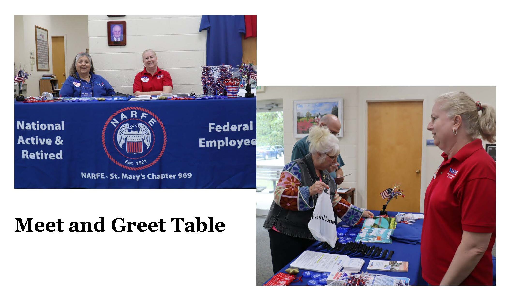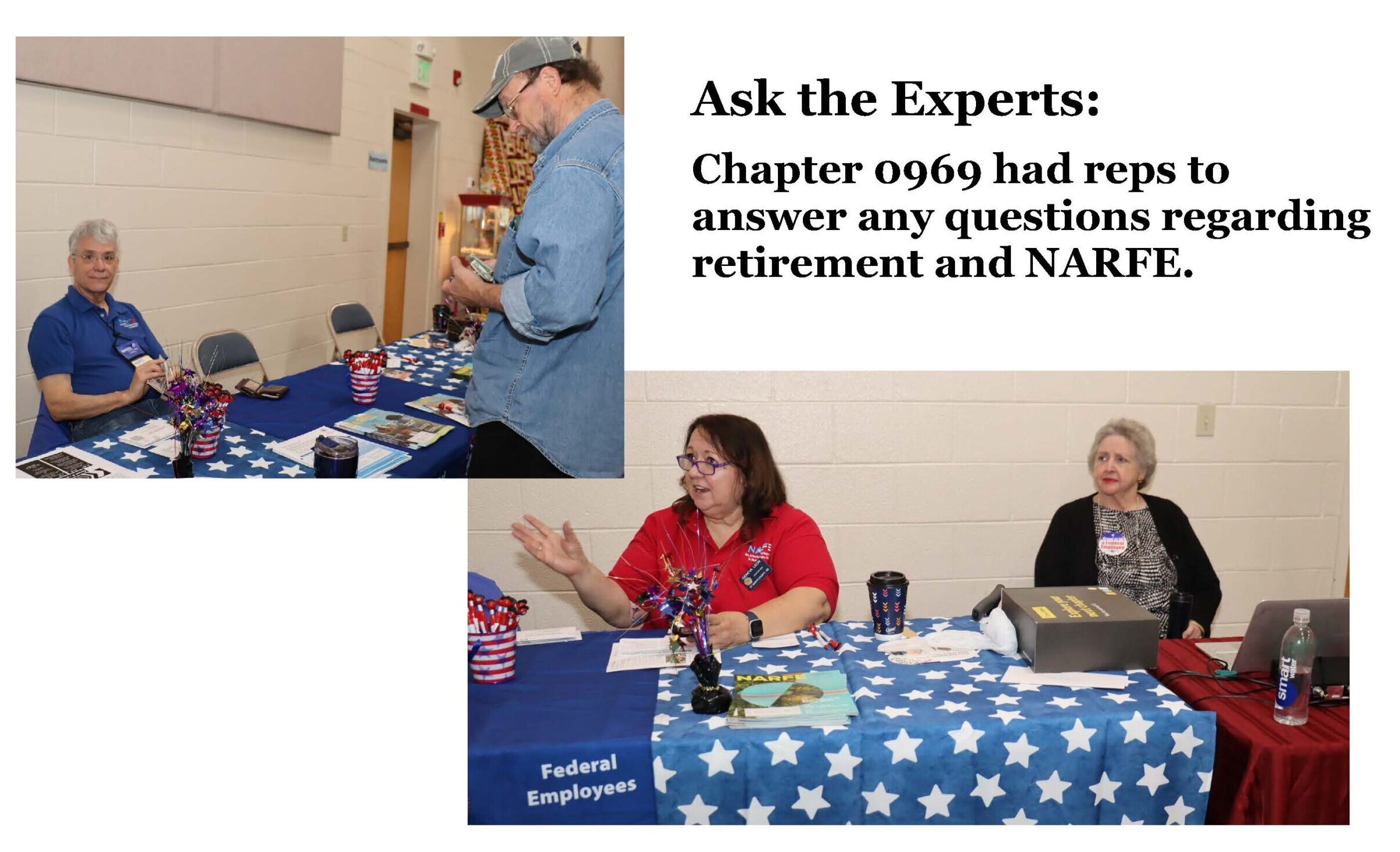 In May 2024, the NARFE Chapter 0969 hosted a Federal Employee Benefits Expo featuring many vendors with informative information and lots of free merchandise. There were hourly door prizes and a free NARFE membership given out during the event. The venue is at the Mt. Zion Church in Mechanicsville, MD and we hope to see you in May 2025.