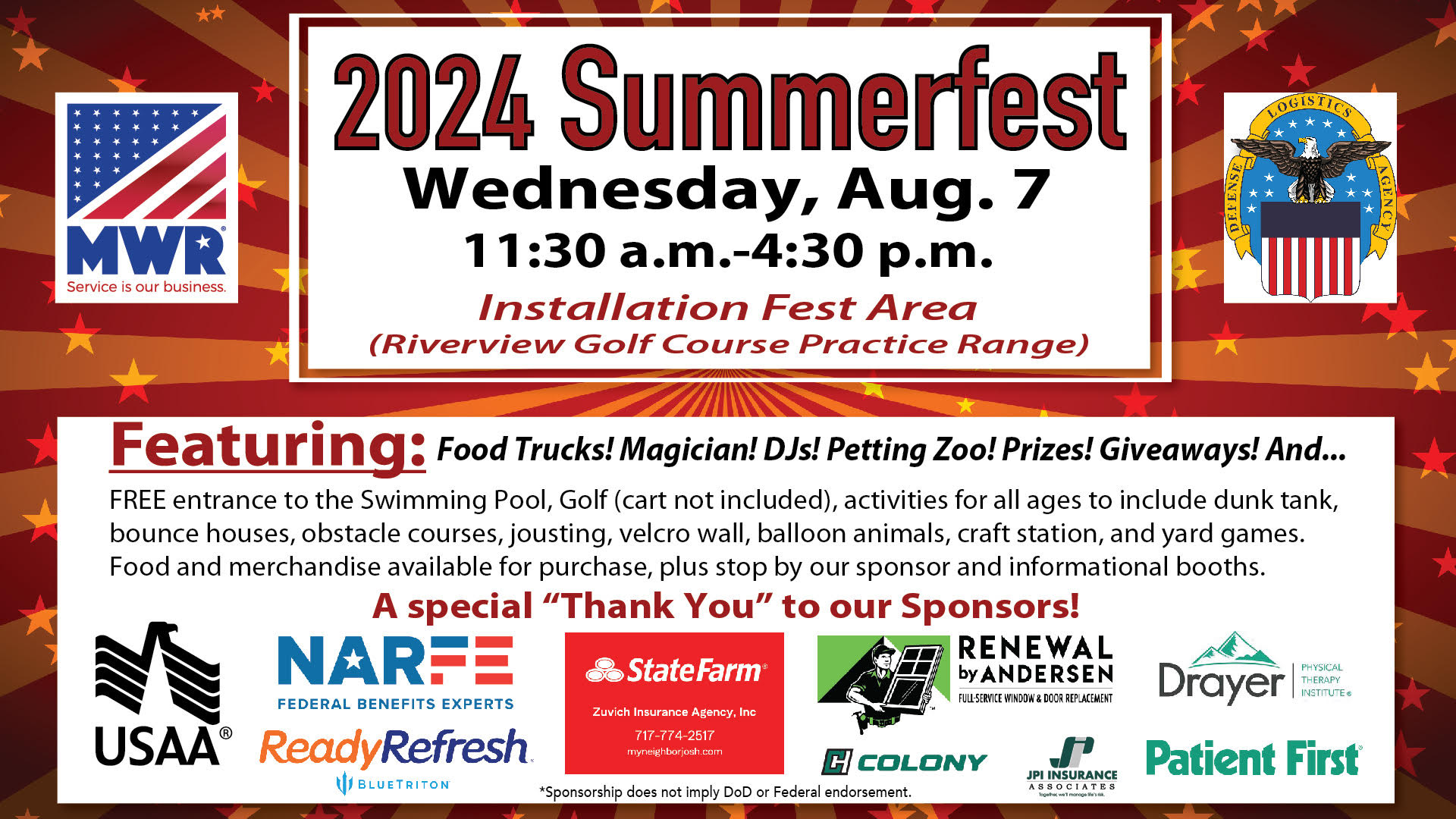 Defense Logistics Agency Susquehanna Family, Morale, Welfare, and Recreation Summerfest on August 7.