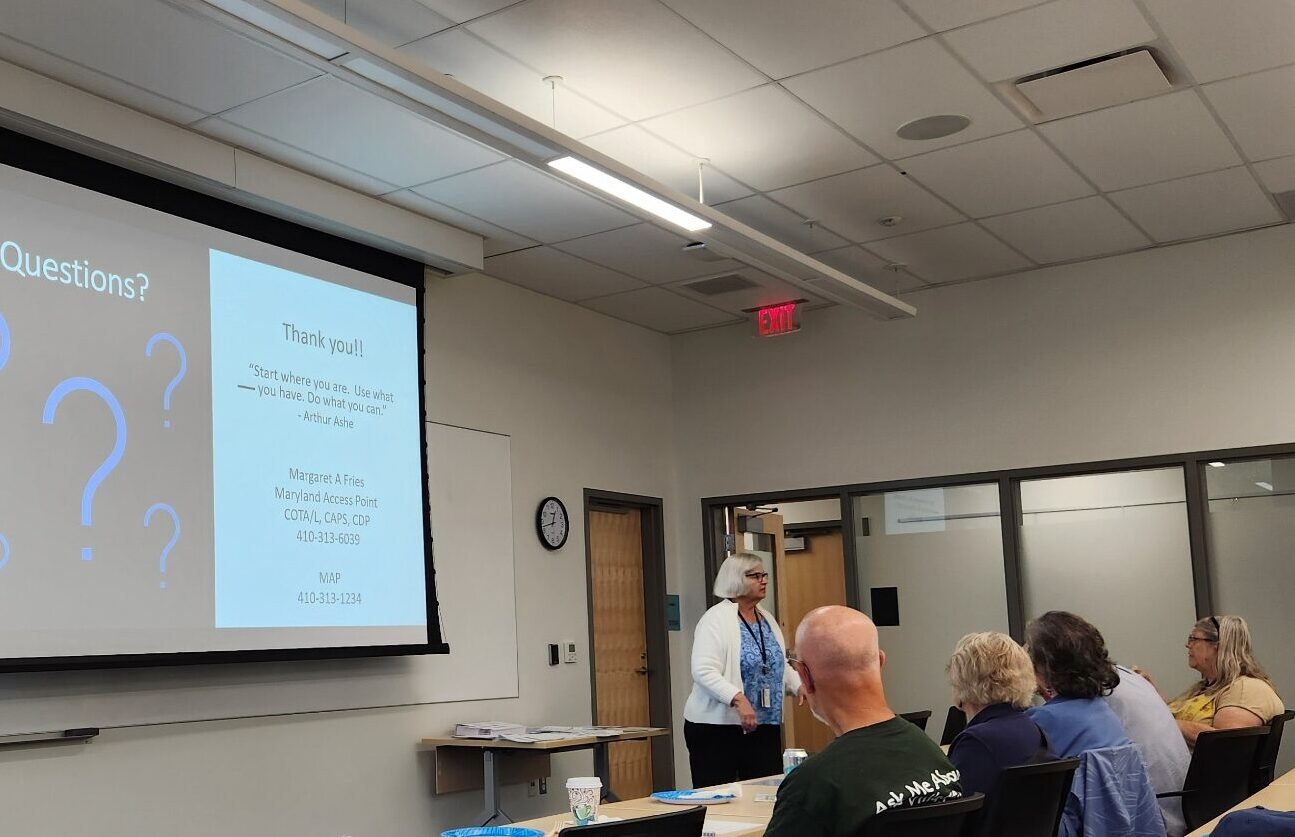 Margaret Fries, COTA/L CAPS of Maryland Access Point presenting “Navigating Local Aging Services.”