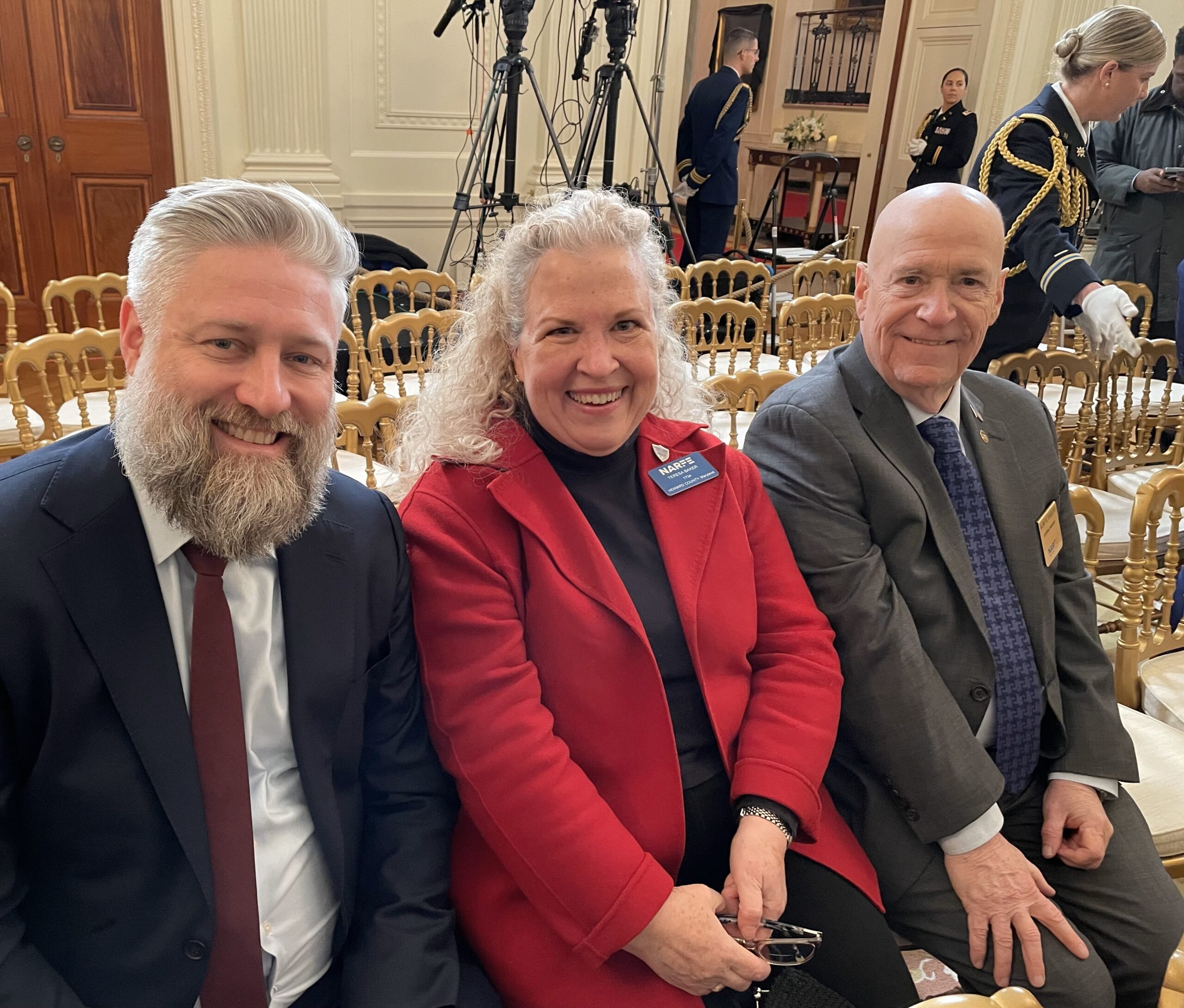 John Hatton, Teresa Baker, and Bill Shackelford in the East Room for the bill signing ceremony.