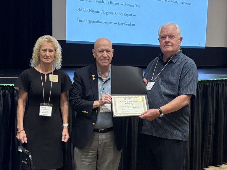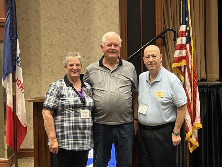 Cindy Blythe Region V RVP, Dorman Otte Iowa Federation President, Bill Shackelford NARFE National President at NARFE Iowa Annual Conference 2024