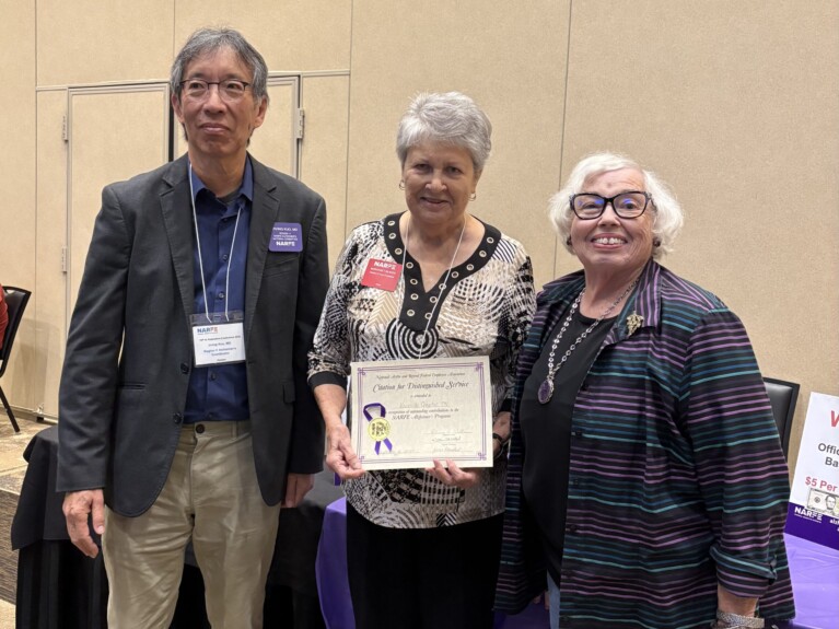 Margaret Beaver accepting Alzheimer’s Award for Knoxville Chapter 791 from Janet Ramstad Alzheimer’s Federation Chair