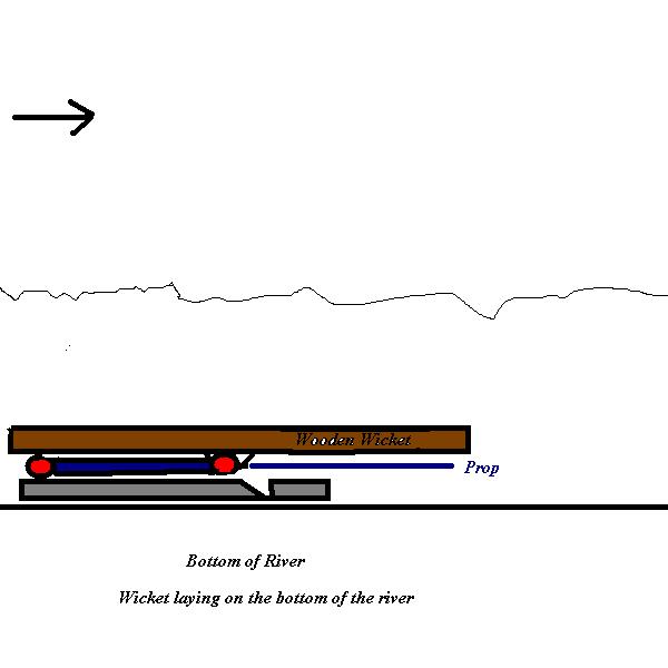 The Wickets were raised by hand and with the help steam engine crane. Hopper (setting prop with the 20′ steel rod ) and his crew